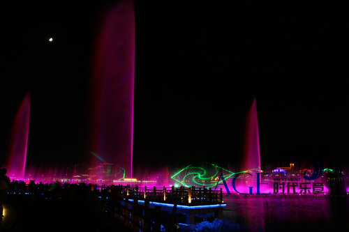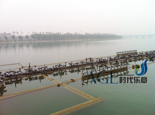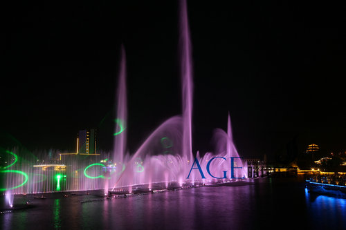 漂浮式噴泉是采用漂浮設施將噴泉安裝于人工湖、河道中的一種噴泉類型,為解決噴泉日常維護及冬季防凍,在漂浮式噴泉的基礎上增加升降系統,使噴泉可自由升降,冬季結冰時升降平臺將噴泉設備降至凍層以下,防止設備損壞,工作時升至工作水位進行噴泉表演,需要對設備進行維護檢修時升降平臺上升至水面以上,使噴泉設備完全露出水面,方便對設備進行維護檢修。