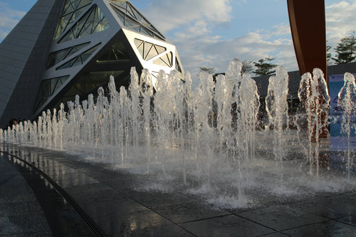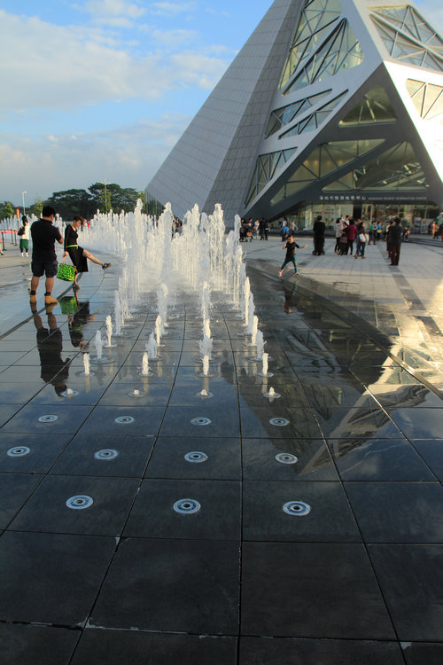 旱式噴泉:放置在地下,表面飾以光滑美麗的石材,可鋪設(shè)成各種圖案和造型。當(dāng)音樂(lè)響起時(shí),水花從地下噴涌而出,在彩燈照射下,地面尤如五顏六色的鏡面,將空中飛舞的水花映襯得無(wú)比嬌艷,使人流連往返。停噴后,不阻礙交通,可照常行人,非常適合于賓館、飯店、商場(chǎng)、大廈、街景小區(qū)等。